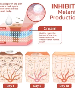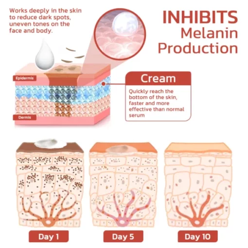 Tranexamic acid is works by inhibiting the production of melanin and reducing the transfer of melanin to the skin’s surface, which can reduce the appearance of dark spots and even out skin tone.