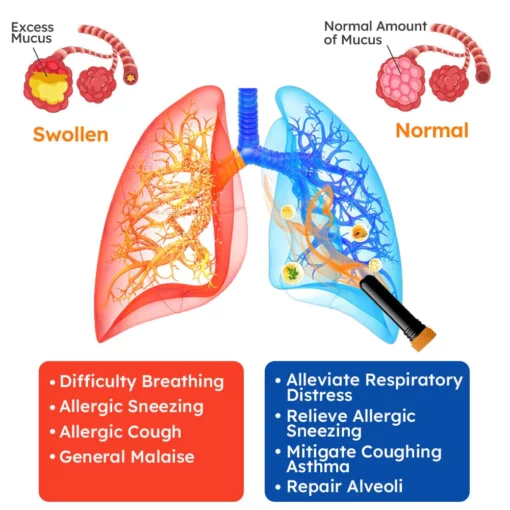 This advanced technology controls the release of active ingredients within the microcapsules on its own, delivering targeted substances to repair alveoli and slow allergy symptoms. And as an effective alternative to pills or injections, it is not only easy to carry around but also helps the respiratory system to naturally remove waste and promote lung health.