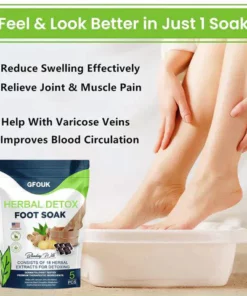 Indulge in a luxurious spa experience right at home with GFOUK™ Herbal Detox Foot Soak Beads! Infused with natural ingredients like Ginger root, Epsom salt, Lavender, and Green tea, these beads help reduce swelling and promote slimming while detoxifying your body. Say goodbye to tired, achy feet and hello to a relaxed and rejuvenated you. Try it now and discover the slimming power of our herbal foot soak beads!