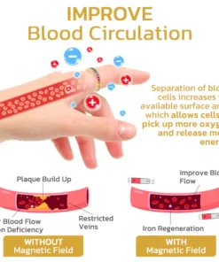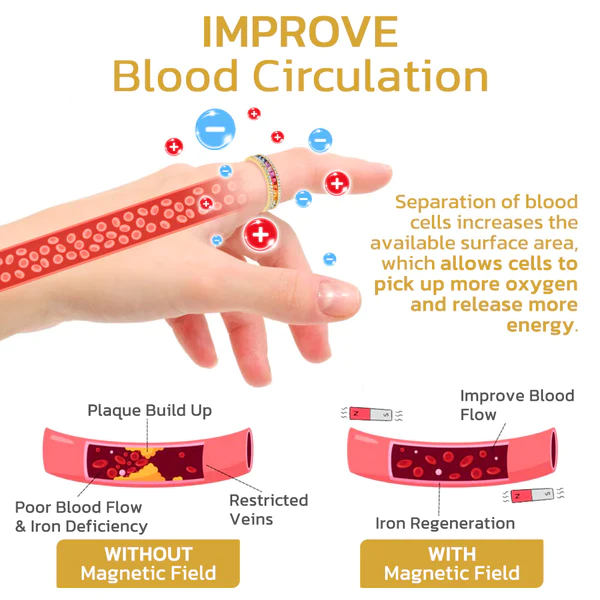 Wenn der Ring getragen wird, kommt er mit der Haut in Kontakt und kann dazu beitragen, Energiekanäle, die den natürlichen Fluss des Körpers stören, neu auszurichten. Diese Neuausrichtung kann möglicherweise die Durchblutung verbessern, Stress reduzieren und Übergewicht abbauen.
