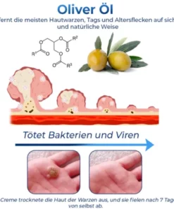 Oliver Oil ist bekannt für seine besonderen Eigenschaften bei der Entfernung von Warzen und Hautflecken. Oliver Öl entfernt die meisten Hautwarzen, Tags und Altersflecken auf sichere und natürliche Weise.