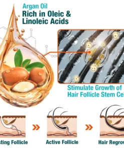 GFOUK™ ZenithGrowth Moroccan Hair Oil makes use of the powerful and popular natural remedy, Argan oil. This 100% pure, natural, and unrefined oil is cold-pressed to preserve its raw botanical goodness. Packed with essential fatty acids and vitamins, it promotes hair growth, boosts scalp health, and awakens dormant follicles. Its effectiveness and versatility have made it a trusted staple in hair care and beauty routines worldwide.
