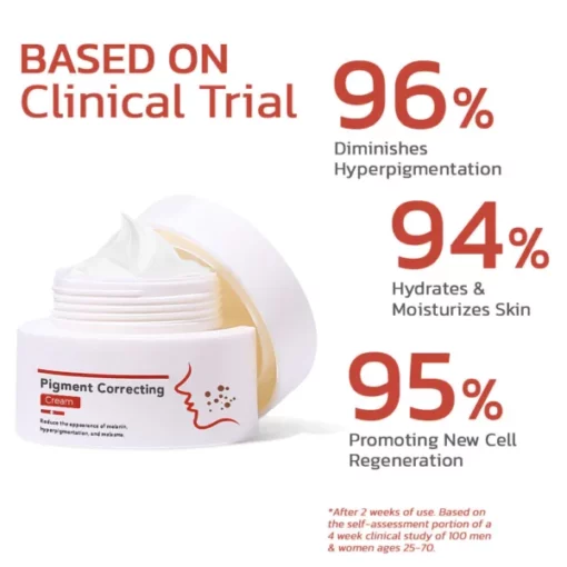 The GLODIANT™ Pigment Correcting Cream is a potent skin treatment that targets dark spots caused by hyperpigmentation. When applied to the skin, the cream’s active ingredients work together to inhibit the production of melanin and prevent the transfer of melanin to the skin’s surface, helping to reduce the appearance of dark spots and even out skin tone.