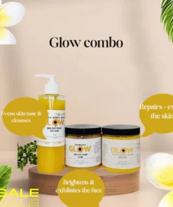 The Glow Combo includes a set of products, typically including a cleanser, a serum, and a moisturizer. These products work together to cleanse, nourish, and hydrate your skin, promoting a healthy and glowing complexion.