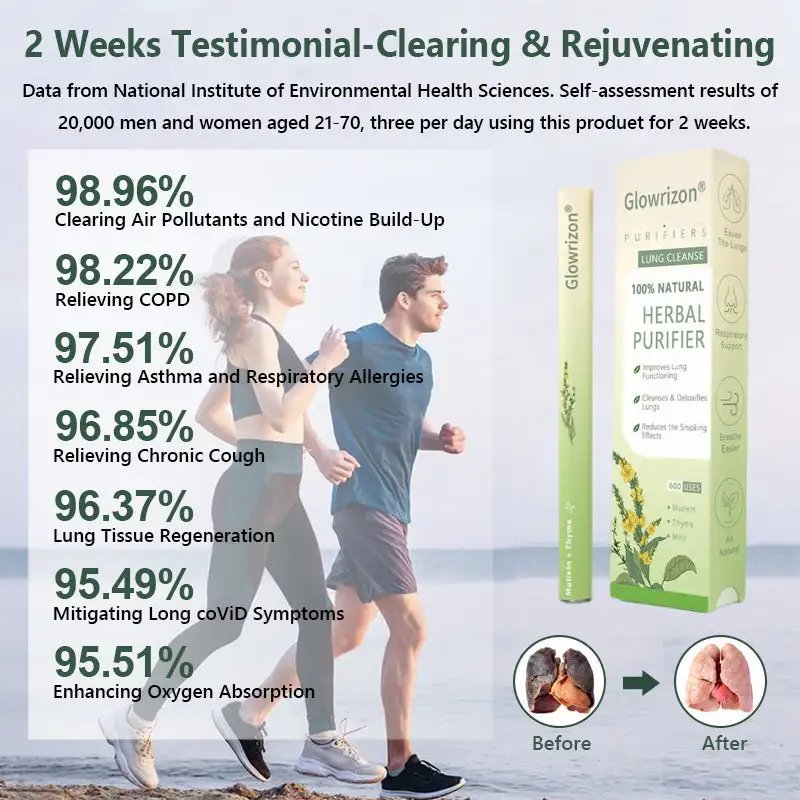 After using Glowrizon® 𝐌𝐮𝐥𝐥𝐞𝐢𝐧 𝐇𝐞𝐫𝐛𝐚𝐥 𝐋𝐮𝐧𝐠 𝐏𝐮𝐫𝐢𝐟𝐢𝐞𝐫. I found that my lungs no longer felt so tight. and there was a refreshing sense of strength slowly restoring my ability to breathe. Four weeks later. I went for a follow-up at the hospital. and the doctor was amazed to find that the inflammation in my lungs had significantly reduced. and my lung function had improved. My family also noticed how much more energetic I had become. and I was hardly needing to use the inhaler anymore. This made me feel extremely encouraged and moved.”