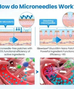 Powered by advanced nano microneedle transdermal technology, the GLOWRIZON® GlucoSlim Nano Patch delivers active ingredients deep beneath the skin to effectively support metabolic health. It works by helping regulate insulin secretion, suppress glucagon release, and slow gastric emptying—promoting appetite control, blood sugar balance, and fat metabolism. At the same time, Matrixyl®3000 boosts skin regeneration and firmness, helping users achieve a slimmer shape and visibly smoother, more toned skin throughout their wellness journey.
