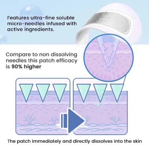 - Each patch features thousands of ultra-fine microneedles that painlessly dissolve into the skin, delivering active ingredients deep beneath the surface.