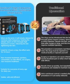 The Glowrizon™ 𝗨𝗹𝘁𝗿𝗮𝘀𝗼𝗻𝗶𝗰 𝗙𝗮𝘁 𝗕𝗹𝗮𝘀𝘁𝗶𝗻𝗴 & 𝗙𝗮𝗿 𝗜𝗻𝗳𝗿𝗮𝗿𝗲𝗱 𝗕𝗹𝗼𝗼𝗱 𝗦𝘂𝗴𝗮𝗿 𝗕𝗮𝗹𝗮𝗻𝗰𝗶𝗻𝗴 𝗗𝗲𝘁𝗼𝘅 𝗪𝗿𝗶𝘀𝘁𝗯𝗮𝗻𝗱 utilizes continuous sound wave pulses to activate and break down fat cells. Our technology operates with low-frequency sound waves ranging from 3 to 60 Hz. ensuring complete safety for blood vessels. neurons. lymphatic vessels. and fibrous tissue. It is entirely harmless to the human body.