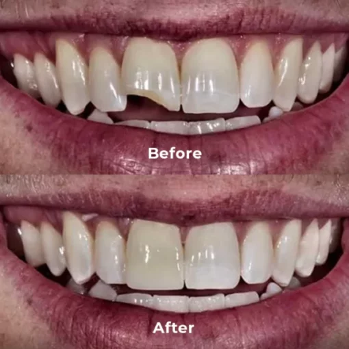Our product provides temporary fillings for gaps between the teeth, holes, and even cavities. In just a few steps, the tooth restoration from this teether gives the appearance of perfectly even teeth.