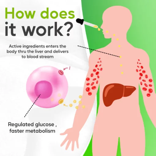 When the drops are ingested, the natural ingredients are absorbed into the bloodstream and transported to the liver, where they begin to exert their effects. The liver plays a key role in regulating blood sugar levels, as it is responsible for producing and releasing glucose into the bloodstream when needed. GluCare™ Chlorophyll Sugar Control Drops help support healthy glucose metabolism by inhibiting the absorption of glucose in the intestines and promoting the uptake of glucose by the cells. This helps to prevent spikes in blood sugar levels after meals and promotes more stable blood sugar levels throughout the day.