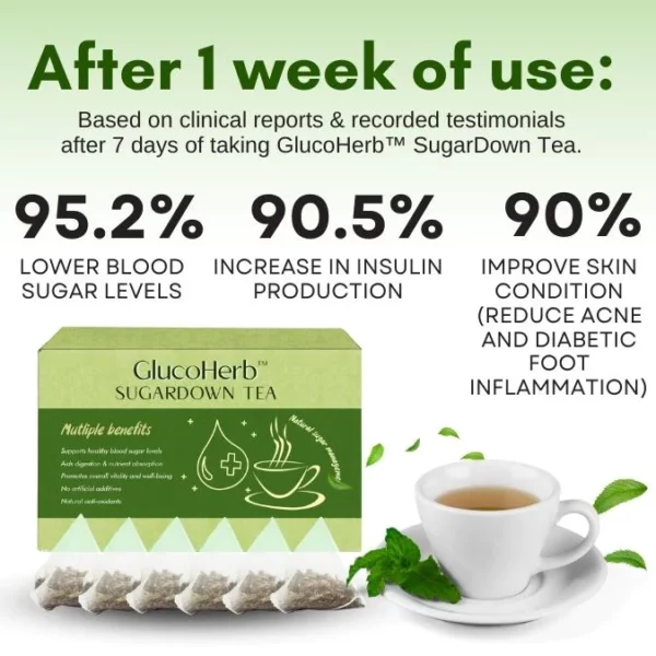 Dr. Emily Roberts, a renowned endocrinologist, highly recommends GlucoHerb™ SugarDown Tea as an effective and natural option for managing high blood sugar levels. According to her, “GlucoHerb™ SugarDown Tea provides a unique blend of herbs that have shown promising results in supporting healthy blood sugar levels. In our recent clinical study conducted on individuals with high blood sugar, individuals who consume GlucoHerb™ showed a significant reduction in fasting blood sugar levels and improved overall glycemic control among participants who consumed the tea regularly. This study highlights the potential benefits of GlucoHerb™ SugarDown Tea in supporting healthy blood sugar regulation.”