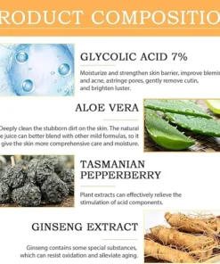 It contains a 7% concentration of Glycolic acid – a wellstudied alpha-hydroxy acid – and a plant-derived Tasmanian Pepperberry derivative, which varies in colour seasonally, and which may cause an apparent colour variation in the formula from time to time.