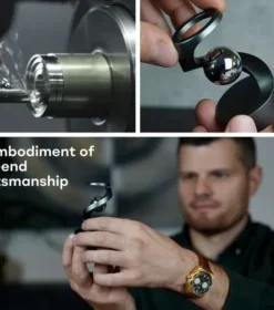 Gravity Defying Kinetic Desk Toy is no doubt our most complex desk toy so far. To achieve such a unique visual appearance it required months of prototyping and experimenting with different kinds of shapes and materials. The manufacturing process requires dedication and true precision but it is well worth it. Gravity Defying Kinetic Desk Toy is CNC machined out of the highest quality metals and consists of 8 different parts precisely assembled together.