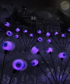 The latest design eyeball-shaped solar eyeball lights, 2 packs of 6 LED solar swaying eyeball lights, let you enjoy colorful lights and fun nights, specially designed to create a charming and spooky Halloween atmosphere, very Perfect for Halloween parties