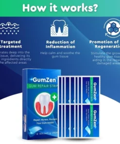 GumZen™ Gum Repair Strips provide effective solutions for gum repair, specifically targeting issues like gingivitis and gum recession. These innovative strips allow you to address gum problems in the comfort of your own home, without the need for expensive treatments or lengthy appointments.