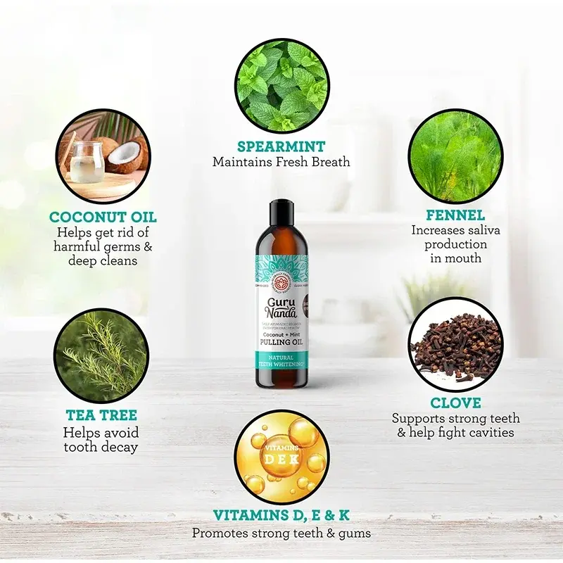 Package Includes: 1 x GURU NANDA™️ COCONUT OIL PULLING W/ ESSENTIAL OILS