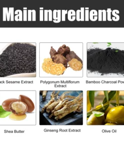 Black Sesame Extract: Rich in vitamins, minerals and antioxidants, it effectively promotes hair growth and health, making hair look darker and shinier.