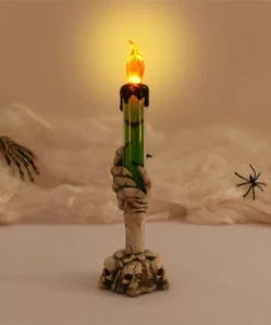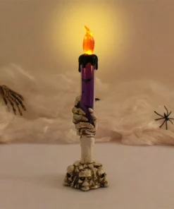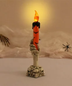 【Halloween Theme Design】The candle holder is designed in the skeleton hand image, and the base of the LED skull candle is carved with a skull, full of Halloween elements, you can place it on bookshelves, mantels, or desktops to set a creeping mood for Halloween festival.