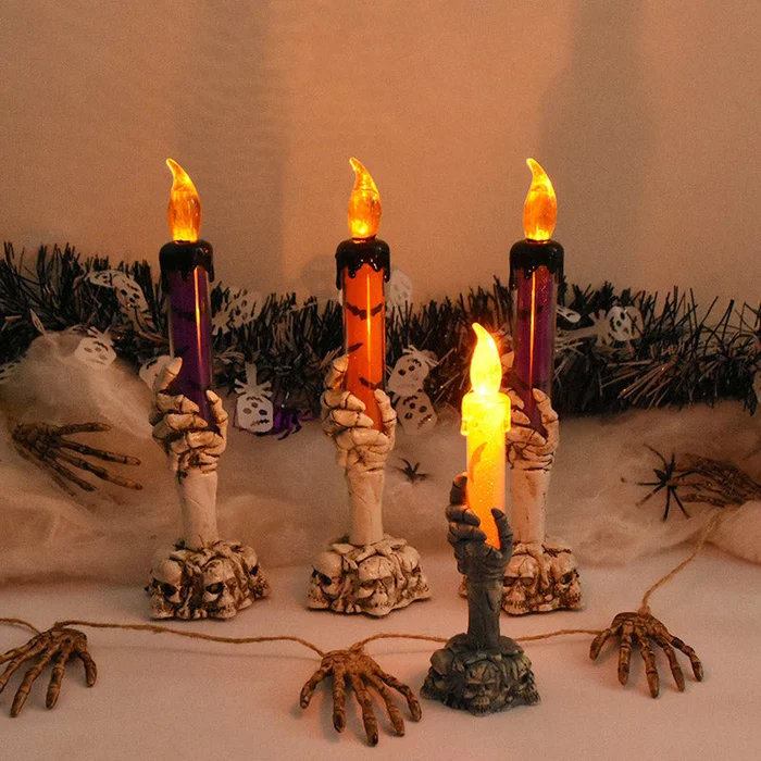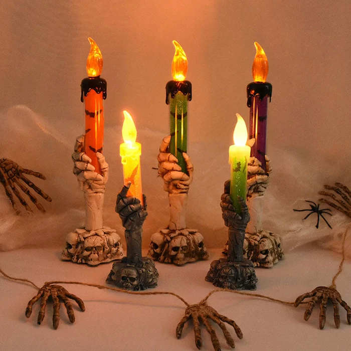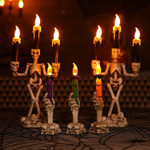【Flameless and Safe】Our skeleton lamps just adopt candle shape, not real candles, they are battery-powered and emit light through the electronic power source, flameless and tasteless, and safe to use.