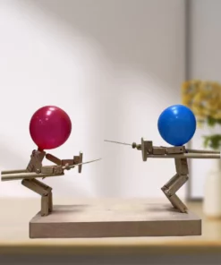 - ⚔️⚔️Hölzerne Fechtpuppen: Wooden Fencing Puppets – ein innovatives und rasantes Kampfspiel mit hölzernen Bots, das für zwei Spieler entwickelt wurde. Erlebe spannende Duelle mit handgefertigten, aufwändig gestalteten Fechtpuppen aus Holz, die einen adrenalingeladenen Ballonkampf wie keinen anderen versprechen.