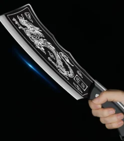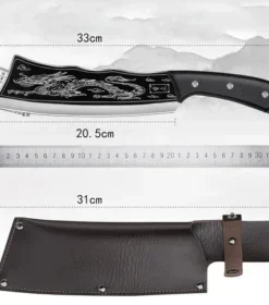 The engraved white Dragon pattern on the blade and the exquisite brass decoration on the handle make this cleaver knife a masterpiece.