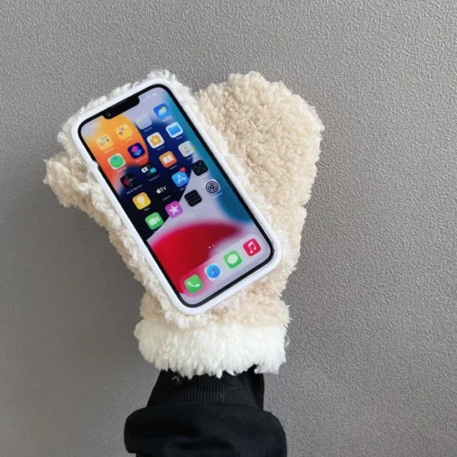 A super cute phone cases for winter. The fluffy cotton phone case allows you to wear and play with your phone comfortably in the cold winter. What a fun gift it is, and a very good gift for your friends and family.