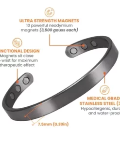 The HEALTHTECH™ Cholesterol Blood Sugar Magnetic Therapy Bracelet aids in the body’s natural detoxification processes, which leads to a variety of benefits for health and general wellness such as improved sleep, digestive function, and metabolism. Copper is involved in the production of enzymes that help eliminate toxins, while magnets help keep cells active and in a regenerative state, which in turn improves the delivery of oxygen and nutrients and the removal of harmful wastes.
