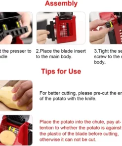 - 🍟Effort-Saving Handle – This french fry cutter is designed with an extended handle and 4 anti-slip rubber tips, which helps effortless cutting. Plus, this potato slicer is also convenient for a mother to prepare french fries for their kids, better saving your time and money.