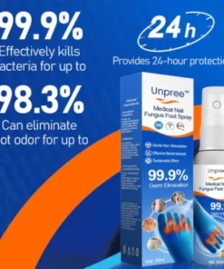 Unpree™ Medical grade fungal nail fungus foot spray is a scientifically proven, fast-acting solution for bacterial foot disorders. It has a 99% efficacy approval rating and is formulated to target a variety of foot problems for optimal foot health. It kills bacteria, yeast and mold on contact, provides immediate relief and eliminates 99.99% of bacteria in less than 1 minute. The spray helps maintain the skin’s pH balance and lasts for 7 days. Spray contains all natural ingredients that are safe to use and promote healing of dry, brittle nails and damaged skin. Effective treatment for fungal infections, grey nails, nail infections, athlete’s foot and bad odor.