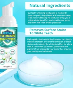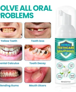 HERBALCARE™ Probiotics Bright Whitening Teeth Mousse is the latest product certified by the American Dental Association and recommended by dentists. It can perfectly solve all oral problems, including dental calculus, bad breath, oral ulcers, dental caries, bleeding gums, tooth sensitivity, gingivitis, loose teeth, periodontitis, swollen gums, tooth damage, tooth loss, etc. No side effects. Made from 100% natural herbs. Suitable for everyone, including children, young people, and the elderly.