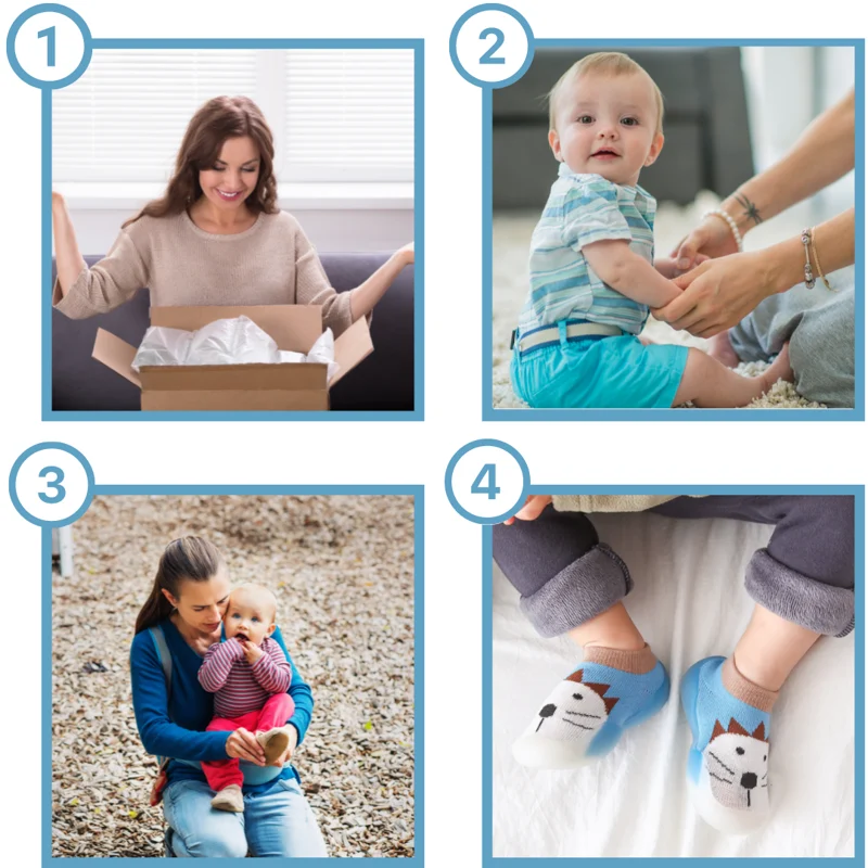 Don’t stress about putting on your child’s shoes. With the HeyBabyGo™ Non-slip Baby Slippers you can put on your baby’s shoes in just 2 seconds. This is only possible because of the flexible and breathable design. The shoe feels like wearing a sock for your baby, but has a firm and durable sole. So he is protected with every step from bumps, slipping and even volatility. Whether playing outside or at home. The shoe is made of 100% cotton and lightweight silicone. This makes our shoes suitable for any size and foot shape in addition, this can be easily washed in the washing machine.