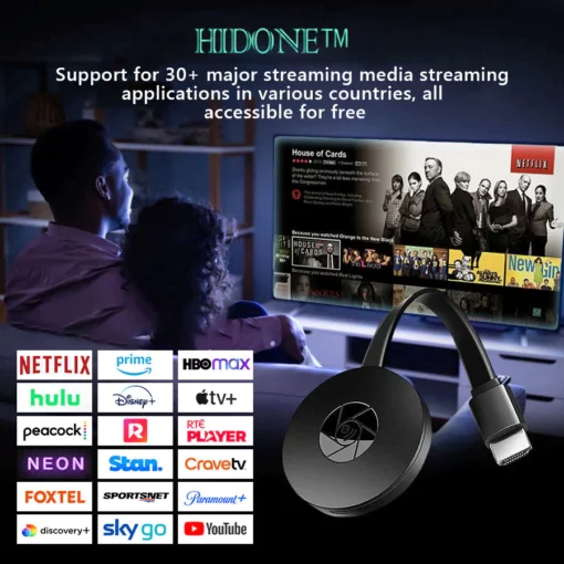 Meet the HIDONE™ TV Streaming Box. It’s a compact box that connects to your TV’s HDMI port. Since most TVs worldwide have had an HDMI port since 2003, it’s widely compatible. Once connected, the box functions like a satellite, granting access to a vast range of TV channels and streaming apps, including premium ones.
