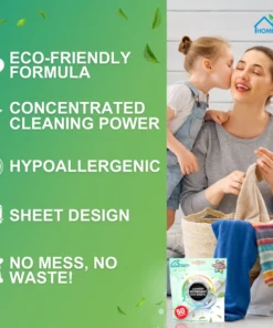 Discover a greener, simpler way to care for your clothes with Home Daily™ Laundry Detergent Eco Sheets. These revolutionary sheets offer powerful cleaning while minimizing waste and environmental impact. Embrace the future of laundry – convenient, effective, and eco-friendly.”