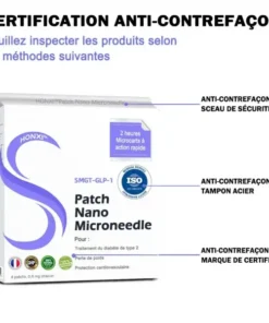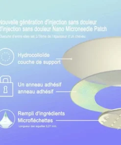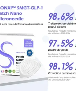 Le Nano Microneedle Patch contient du SMGT-GLP-1 dans chaque patch. Il agit en imitant l’action du Glucagon-like Peptide-1 (GLP-1), en favorisant la sécrétion d’insuline, en inhibant la sécrétion de glucagon et en retardant la vidange gastrique, ce qui aide à contrôler le taux de sucre dans le sang et à perdre du poids.