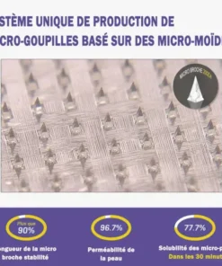 Chaque aiguille mesure 0,27 mm de long, soit 1/7e de l’épaisseur d’un cheveu, et est fabriquée à partir d’un médicament dissoluble. Ces micro-aiguilles sont conçues avec précision à l’aide de techniques de fabrication de pointe afin de garantir une expérience transparente et indolore tout en délivrant efficacement les ingrédients actifs directement dans la peau.