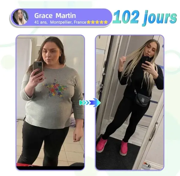 “Depuis de nombreuses années, je me bats avec mon alimentation. En tant que diabétique, il y a beaucoup d’aliments que je ne peux pas manger. Le plus décourageant, c’est que même si j’ai été très stricte avec mon régime, mon poids n’a pas changé du tout et ma glycémie était en dents de scie. Mon médecin m’a dit que certains aliments pouvaient aider à perdre du poids, mais qu’ils n’étaient pas efficaces pour faire baisser la glycémie, ce qui a rendu les choses encore plus difficiles pour moi ! Mais le HonXi™ SMGT-GLP-1 SMGT-GLP-1 Nano-Patch à micro-aiguilles m’a redonné espoir. En seulement 84 jours, j’ai réussi à perdre du poids et ma glycémie est revenue à la normale. Il est si facile à utiliser, une fois par semaine seulement, et je peux manger tout ce que je veux, tout en contrôlant automatiquement mes portions. C’est vraiment génial ! Si je n’avais pas vu l‘information promotionnelle à la pharmacie, je n’aurais peut-être jamais découvert un produit aussi miraculeux.”