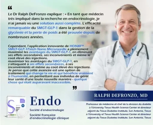 “Je souffre à la fois d’obésité et de diabète, et je suis un traitement SMGT-GLP-1 à l’hôpital. Vous vous demandez peut-être pourquoi je suis soudainement passé à l’utilisation du HonXi™ SMGT-GLP-1 Nano-Patch à micro-aiguilles, également connu sous le nom de semaglutide, est sans aucun doute un excellent traitement. Il agit très rapidement – peu de temps après l’injection, mon appétit a diminué, j’ai perdu du poids rapidement et ma glycémie a baissé. Mais, comme nous le savons tous, il est difficile de se défaire de ses vieilles habitudes. Les jours prévus pour les injections, je trouvais toutes sortes d’excuses pour ne pas les faire, ce qui conduisait à l’échec des traitements. Le coût, la faim, les contraintes de temps, ou même quelque chose d’aussi simple que la pluie à l’extérieur m’empêchaient d’y aller. Mais le Patch à micro-aiguillesest parfait pour quelqu’un comme moi qui lutte contre l’inertie. Je peux l’utiliser facilement à la maison et ses effets durent, ce qui me permet de contrôler mon appétit. Ce qui est encore mieux, c’est qu’il est vraiment abordable et que tout le monde peut utiliser le SMGT-GLP-1 pour aider à perdre du poids et à contrôler sa glycémie!”