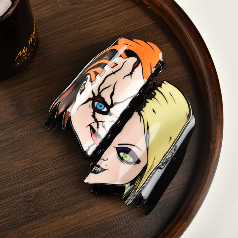 Each clip is decorated with vibrant horror artwork on both sides, ensuring a 360° spooky look. Lightweight yet strong, they keep your buns, ponytails, or half-up styles secure with a sinister twist.