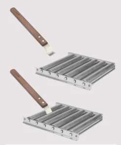 This simple hot dog roll cooker measures 174mm*158mm and is made of stainless steel. Its hardwood handle is 300mm long and easily removable to minimize burns when you use the hot dog roller