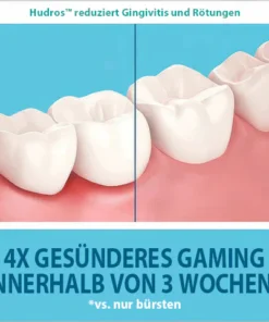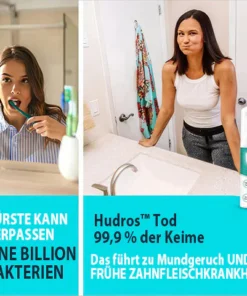 Hudros™ KANN 99,99 % DER BAKTERIEN ABTÖTEN. Beseitigt schlechten Atem. Entfernt Plaque und Zahnstein. Heilt Zahnfleischentzündung und Parodontitis. Lindert Zahnschmerzen. Verhindert und beseitigt Karies in den Zähnen. Stellt den Zahnschmelz wieder her. STIMULIERT DIE BILDUNG VON RESTAURIERENDEM DENTIN. UND STIMULIERT DIE REGENERATION VERLORENER ZÄHNE.