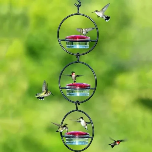 This popular and eco-friendly feeder has a 3.4 oz nectar capacity and a lid with 4 feeding ports, providing your favorite hummingbirds with easy access to clean food.