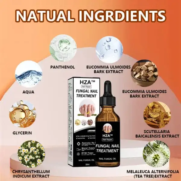 Mechanism: HZA Fungal Nail Treatment uses natural plant-based ingredients to penetrate deep into the nails, killing the fungus and repairing damaged nail tissue. The tea tree oil and lavender oil combat fungal infections, while glucosamine and vitamin E nourish the nails and promote restoration of healthy nails.