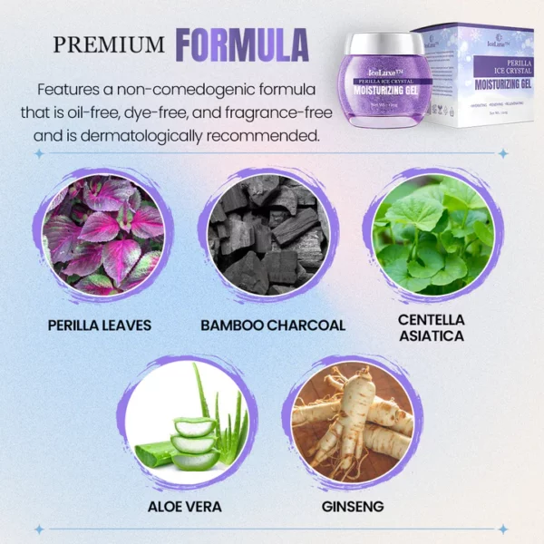 - Perilla Ice Crystals Infusion: IceLuxe™ Perilla Ice Crystal Moisturizing Gel harnesses the exclusive power of Perilla Ice Crystals, providing an invigorating, cooling sensation to calm and rejuvenate your skin.