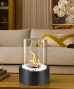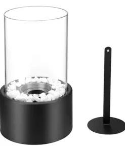- Modern Style: Modern in every sense of the word, this elegant indoor tabletop fireplace sports a sleek black metal base and a removable cylindrical glass body