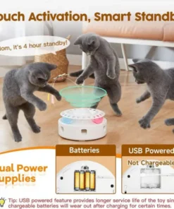 Thanks to a motion sensor, the toy reactivates automatically when it detects your cat’s movement, ensuring continuous play without you having to manually restart it. This intelligent feature provides your cat with an uninterrupted play experience.