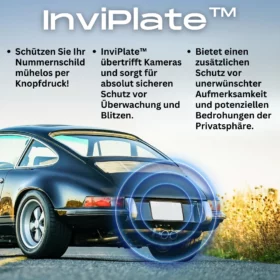 In einer Welt, in der die Priorisierung des Datenschutzes, insbesondere in Bezug auf Nummernschilder, obligatorisch geworden ist, bietet Ihnen InviPlate™ einen effektiven Schutz Ihrer persönlichen Daten. Diese Nummernschildabdeckungen werden mühelos über eine drahtlose Fernbedienung aktiviert und verwandeln sich nahtlos in ein undurchsichtiges Schild und bieten einen robusten Schutz vor unerwünschter Aufmerksamkeit. Seien Sie versichert, dass InviPlate™ die Wahrung Ihrer Privatsphäre in einer Welt gewährleistet, in der der Schutz personenbezogener Daten an erster Stelle steht.