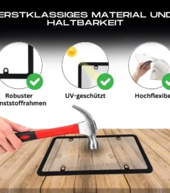 - Schlanker Kennzeichenrahmen im Lieferumfang enthalten
