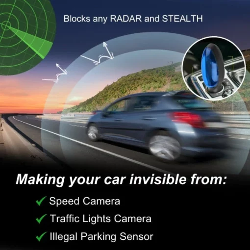 Speed Camera Invisibility: Disrupts signals used by speed cameras, making your vehicle practically invisible. Drive confidently without worrying about automated speed enforcement.