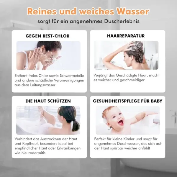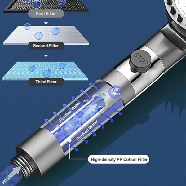 Mit dem integrierten PP-Baumwollfilter werden Verunreinigungen und schädliche Mineralien aus dem Wasser entfernt, was zu einer besseren Hautpflege und einer insgesamt gesünderen Duscherfahrung beiträgt.