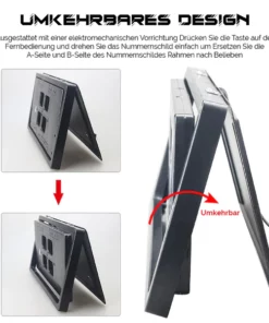 Der Autokennzeichenwender besteht typischerweise aus einem Mechanismus, der das Kennzeichen drehen oder wenden kann, sodass es bei Bedarf versteckt oder gezeigt werden kann. Durch Aktivierung des Geräts kann das Kennzeichen schnell umgedreht werden, um das Schild innerhalb von etwa drei Sekunden entweder anzuzeigen oder zu verbergen. Der Zweck dieses Geräts ist es, dem Fahrzeughalter Privatsphäre und Schutz zu bieten. Es kann besonders nützlich in Situationen sein, in denen Privatsphäre gewünscht wird, wie beim Parken in öffentlichen Bereichen oder wenn es notwendig ist, das Kennzeichen aus Sicherheitsgründen vorübergehend zu verbergen.